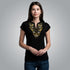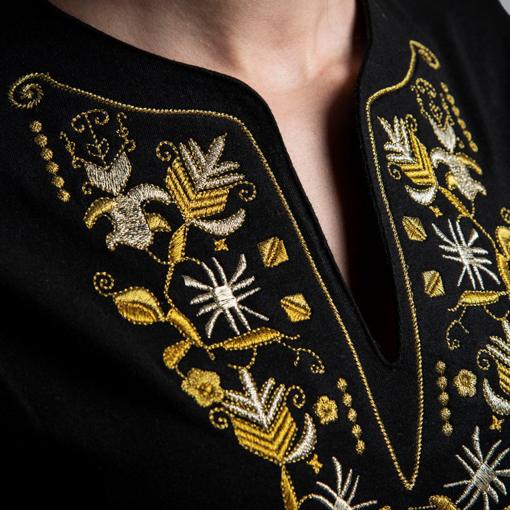 Women's t-shirt with V-shaped neckline embroidered with "evil" Samokov embroidery"Elbetica"