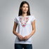 Women's t-shirt with V-neck embroidered with self-stitching"Elbetica"