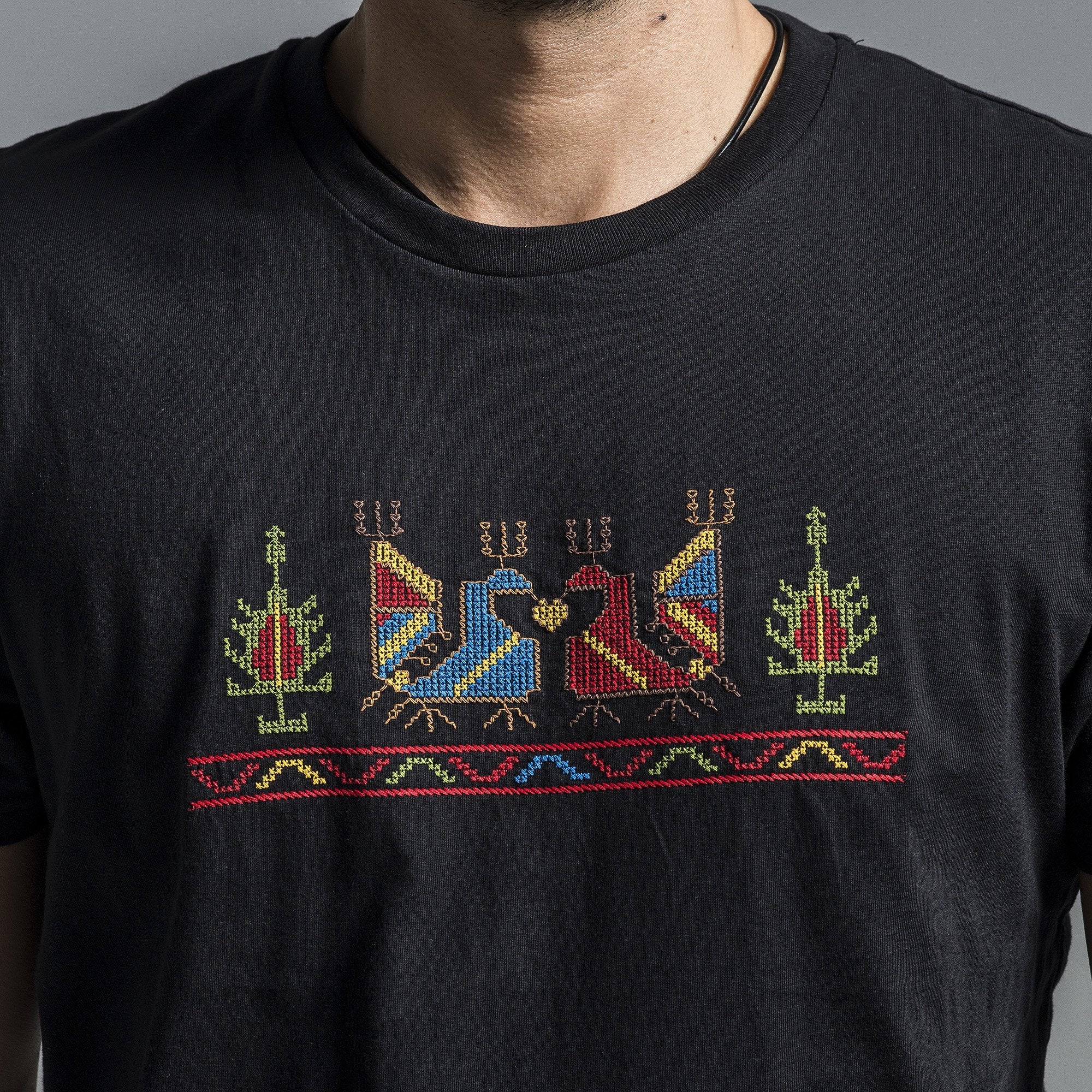 Тенискa с къс ръкав - бродирана с шевица "Петли"